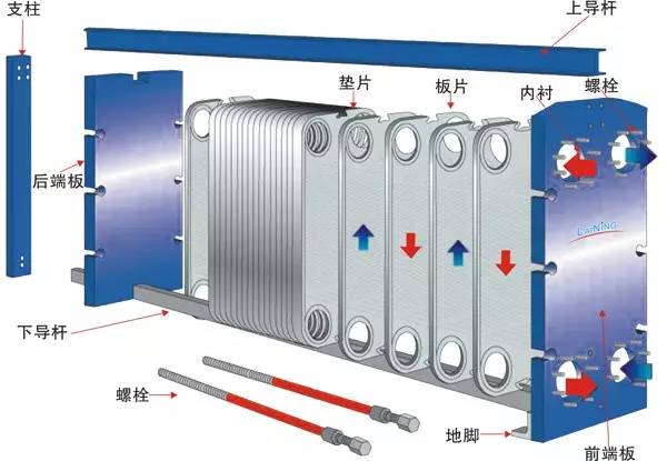 板式換熱器的墊片在使用時如果發(fā)生滲漏、斷裂、老化等現(xiàn)象,要及時更換。更換應(yīng)按以下順序進行。
