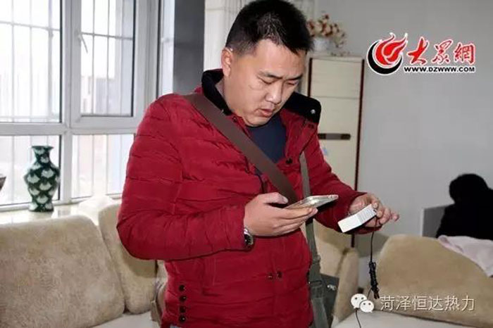 劉明賢在D棟12樓居民張大爺家中測試溫度,室溫剛剛達(dá)標(biāo),劉明賢和任永輝開始查找原因