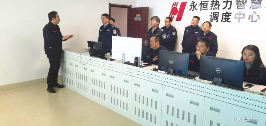 座談結束后,市公安局城市警察支隊李政委一行參觀了永恒熱力智慧熱網(wǎng)調(diào)度中心,了解目前供熱運行現(xiàn)狀。