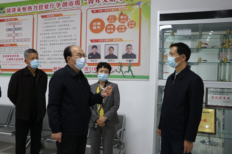 10月29日,市委副書(shū)記、市長(zhǎng)張倫到永恒熱力服務(wù)大廳調(diào)研城區(qū)集中供熱工作。市政府副市長(zhǎng)王忠想,市政府副秘書(shū)長(zhǎng)、辦公室主任王新國(guó),市政府副秘書(shū)長(zhǎng)許尚欽,市發(fā)改委副主任、能源局局長(zhǎng)宋述亮,市城管局局長(zhǎng)王桂榮,市政府研究室主任劉建東,牡丹區(qū)委副書(shū)記、區(qū)長(zhǎng)尹茂林等參加調(diào)研。菏投集團(tuán)黨委書(shū)記、董事長(zhǎng)徐文芹,菏投集團(tuán)黨委委員、副總經(jīng)理、永恒熱力黨支部書(shū)記、董事長(zhǎng)肖培飛陪同調(diào)研。