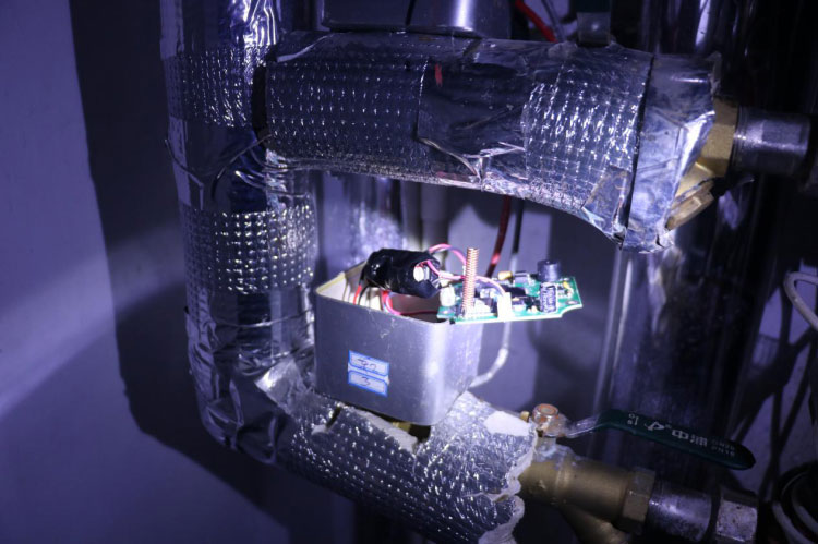 3日下午5時許,菏澤永恒熱力工作人員和牡丹派出所民警共同來到御河丹城小區(qū)31號樓某單元的管道井發(fā)現(xiàn),預付費智控閥已經(jīng)被破壞,電機已被拆除,暖氣閥門也被私自打開,機械式熱能表顯示進回水溫差5.3度,流量925.5立方米,流速每小時0.171立方米。