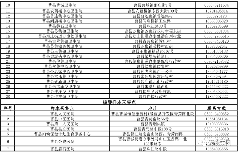 附件:菏澤市設(shè)有發(fā)熱哨點(diǎn)診室的基層醫(yī)療衛(wèi)生機(jī)構(gòu)和核酸樣本采集點(diǎn)名單