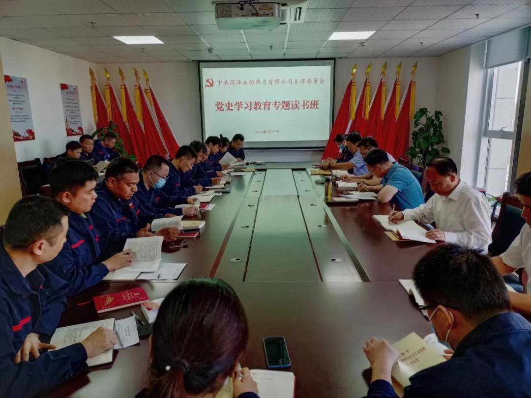 為促進黨史學習教育取得實效、達到預期效果,引導全體黨員干部靜下心、沉下身,聚精會神讀原文、學原著、悟原理,5月27日,菏澤永恒熱力黨支部舉辦黨史學習教育專題讀書班,公司董事長、黨支部書記肖培飛主持會議并講話,全體黨員及中層副職級以上干部參加了此次活動。