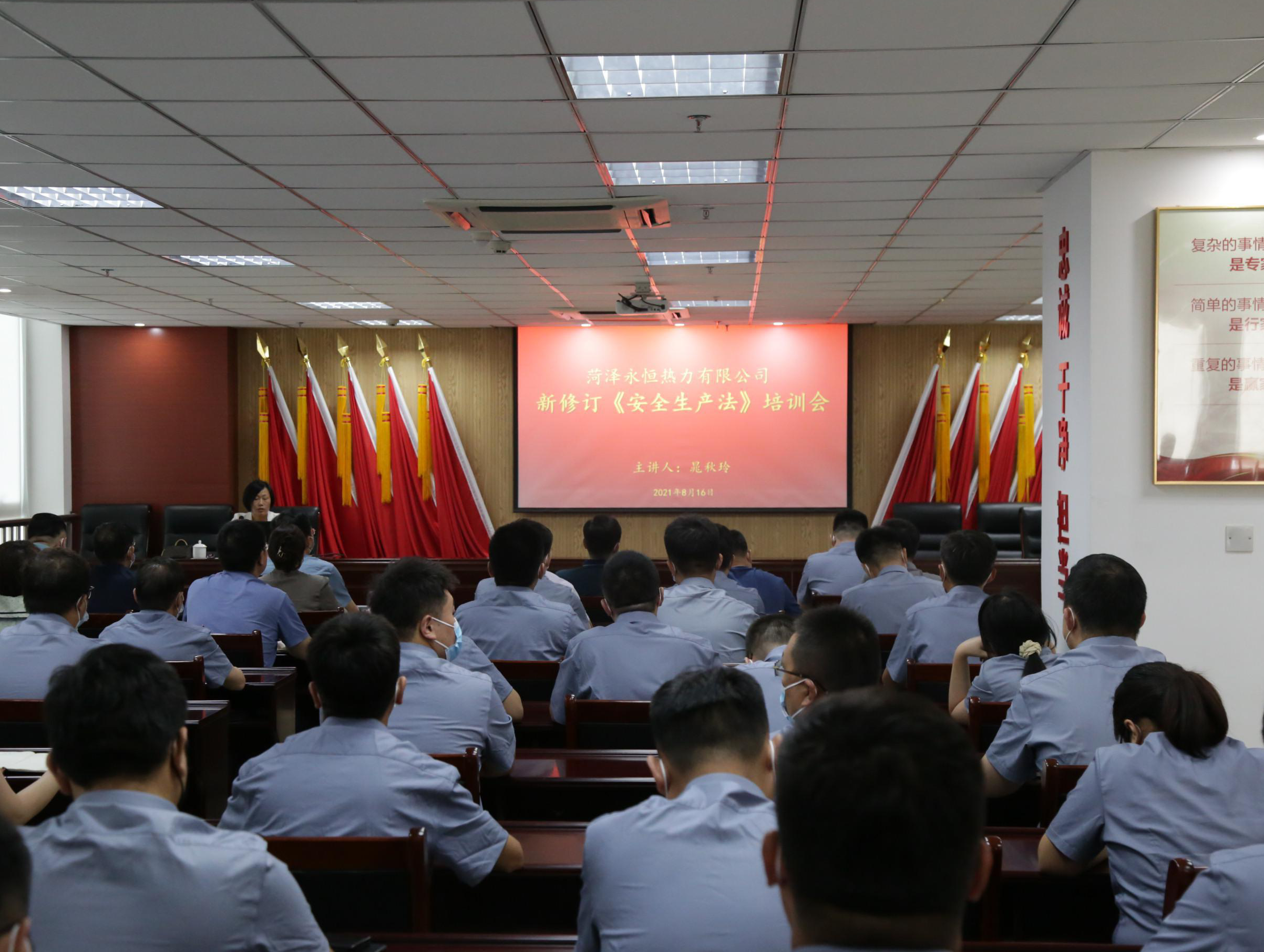 為深入學(xué)習(xí)宣傳和貫徹落實新《安全生產(chǎn)法》,全面加強(qiáng)安全生產(chǎn)法治觀念,提升企業(yè)安全管理水平,8月16日下午,菏澤永恒熱力有限公司邀請安全專家晁秋玲老師到公司開展新《安全生產(chǎn)法》培訓(xùn)講座,公司中層副職以上人員,各部室安全員、消防員共計50余人參加培訓(xùn)。