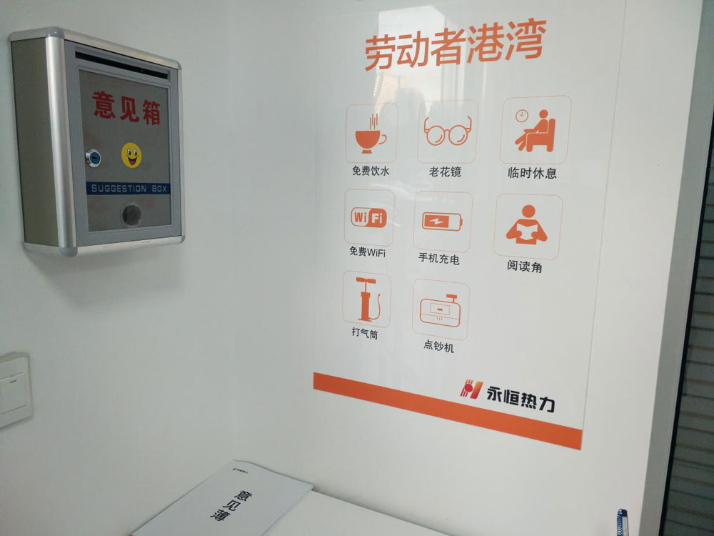 在做好業(yè)務(wù)辦理服務(wù)的同時(shí),營業(yè)大廳還配備了座椅、飲水機(jī)、打氣筒、雨傘等工具,力爭為群眾提供更舒適的服務(wù)體驗(yàn);制作了交費(fèi)業(yè)務(wù)辦理指南、辦理流程圖,上墻公示了暖氣收費(fèi)標(biāo)準(zhǔn)、服務(wù)承諾,有效破解了群眾辦事不便的難題;設(shè)置了勞動者港灣,方便環(huán)衛(wèi)工人避風(fēng)避雨、休息飲水,讓百姓真正感到冬天的溫暖。