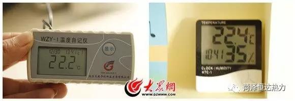 隨后,大眾網(wǎng)記者跟隨工作人員隨機進入該樓另一戶居民家中進行測量,數(shù)據(jù)顯示該戶居民家中溫度為22.2度,與居民家中自備溫度計顯示并無二致。“今天室外溫度0度,在家里一點也感覺不到寒冷。”正在喂雙胞胎孩子吃飯的劉女士比較滿意家中的溫度。
