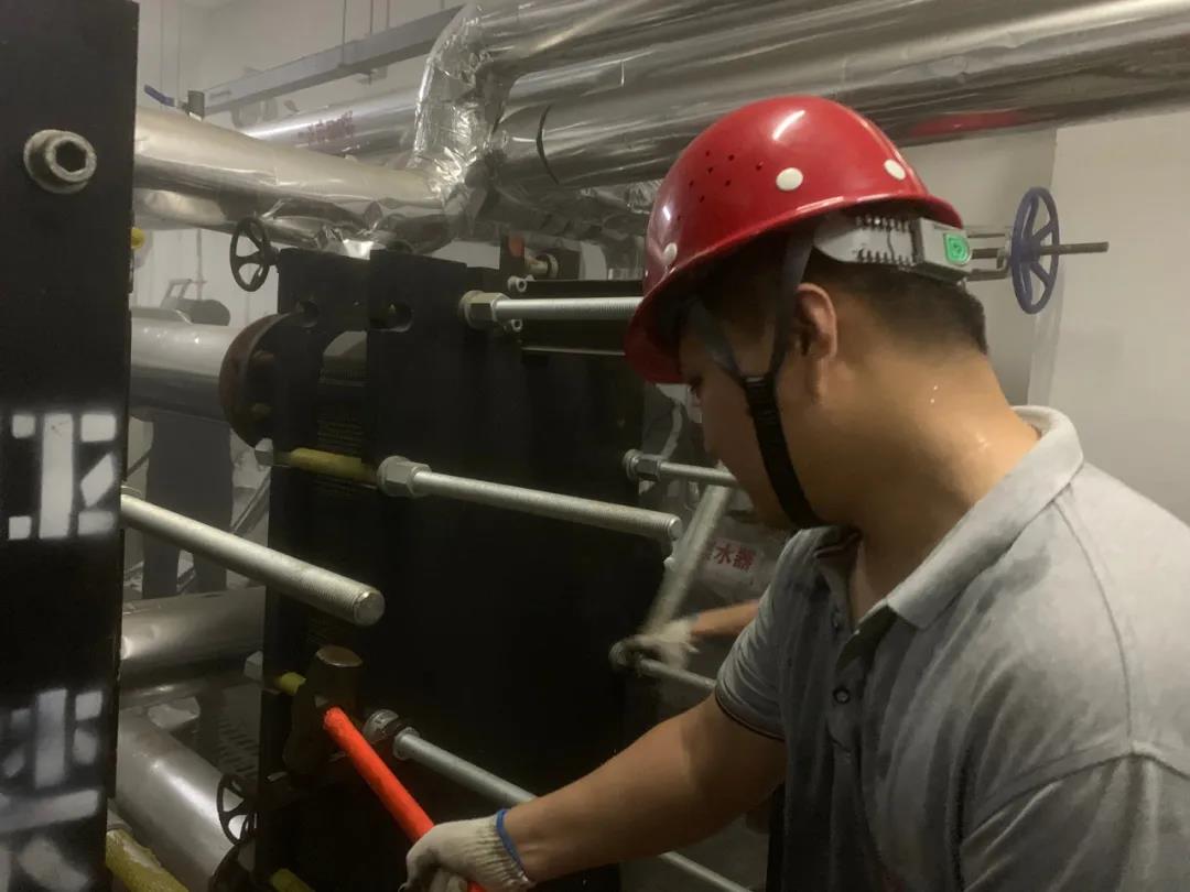 6月17日,在中南世紀(jì)錦城小區(qū)換熱站內(nèi),永恒熱力公司運(yùn)營(yíng)管理四部全體員工正汗流夾背地進(jìn)行換熱機(jī)組清洗工作。即日起,他們將對(duì)轄區(qū)各小區(qū)熱力站換熱機(jī)組開展全面清洗維護(hù),為今冬供熱運(yùn)行做好準(zhǔn)備。