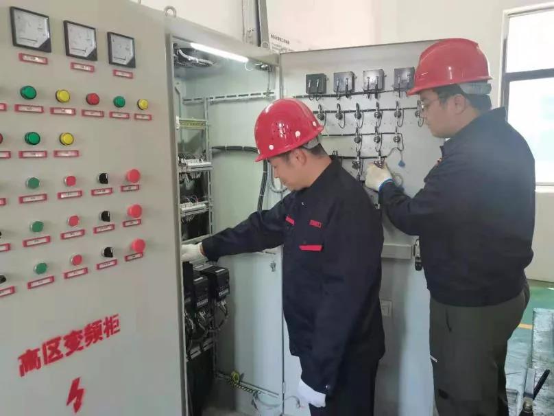 管理員檢修泵體照片