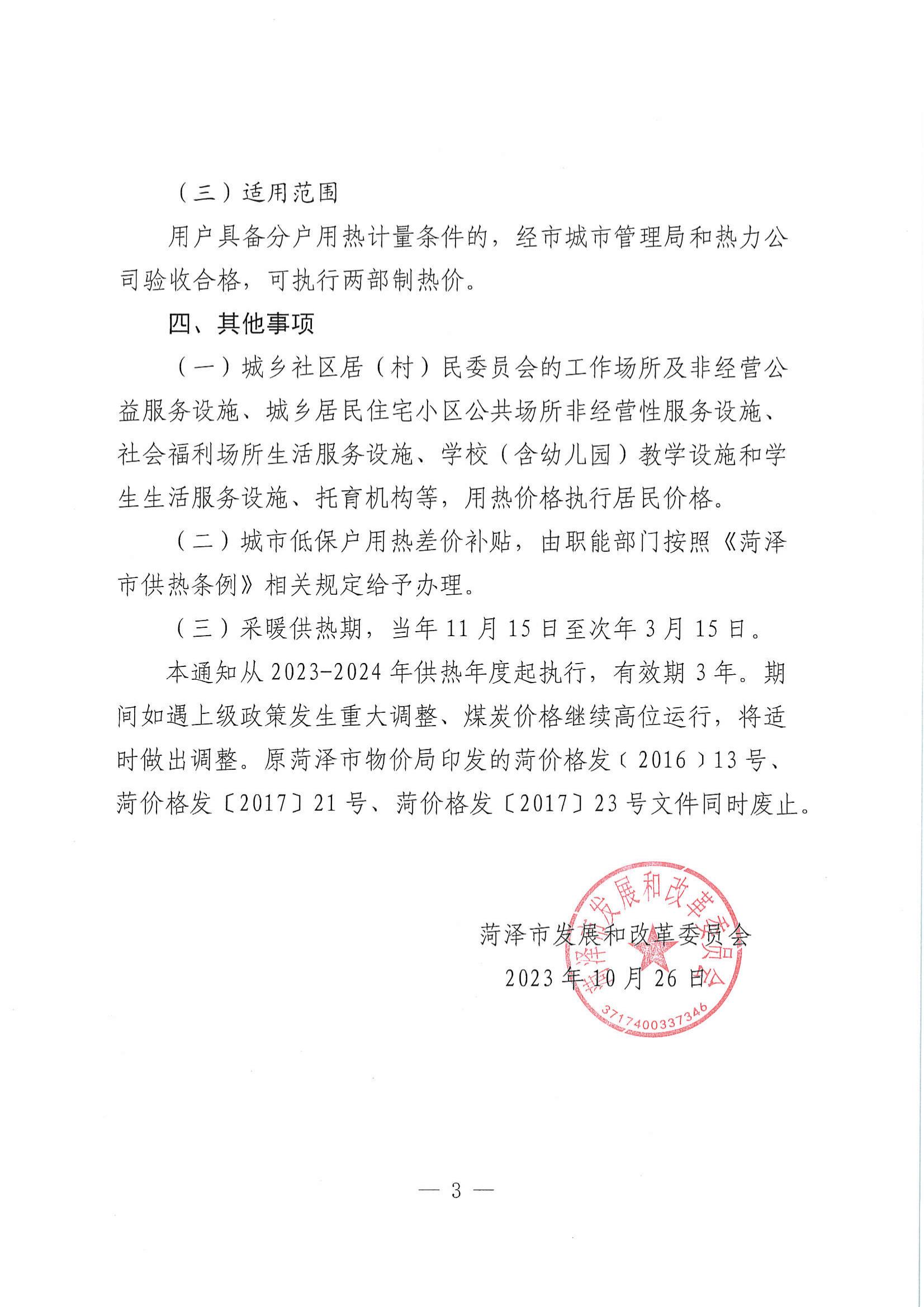 菏澤永恒熱力有限公司收費(fèi)依據(jù):