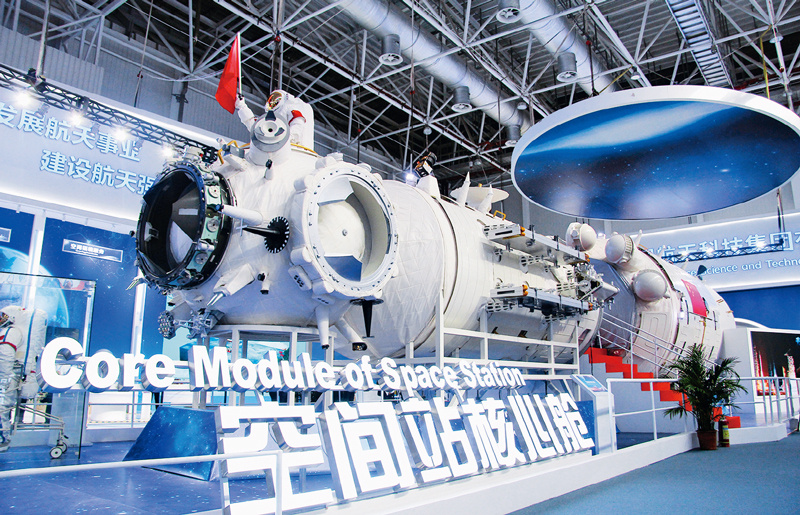 黨的十八大以來,中央企業(yè)認(rèn)真落實(shí)創(chuàng)新驅(qū)動(dòng)發(fā)展戰(zhàn)略,涌現(xiàn)一大批具有世界先進(jìn)水平的重大科技成果。圖為2018年11月6日,在珠海舉辦的第十二屆中國(guó)國(guó)際航空航天博覽會(huì)上展出的由中國(guó)航天科技集團(tuán)研發(fā)的中國(guó)空間站核心艙模型。 國(guó)務(wù)院國(guó)資委供圖 代振瑩/攝